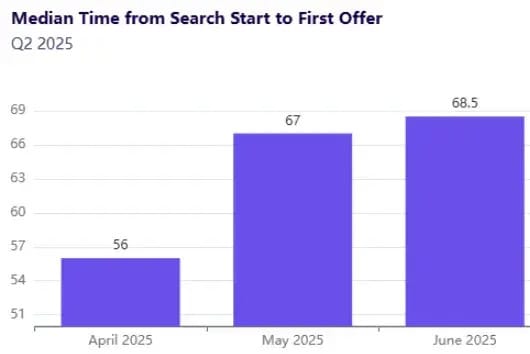 According the The Huntr Q2 2025 report, the median "Time to First Offer" has jumped to 68.5 days. That is a 22% increase in just 3 months.